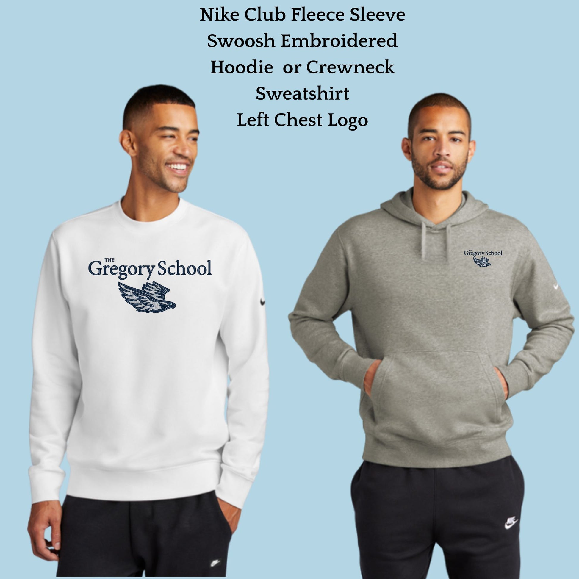 The Gregory School Nike Embroidered #3 Logo Unisex Crewneck or Hoodie Sweatshirt